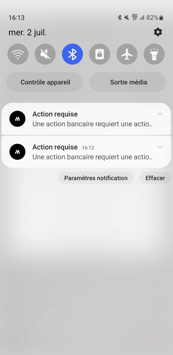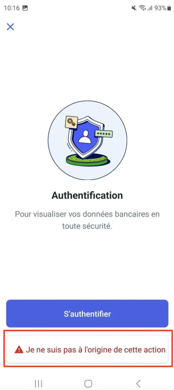 Si vous êtes victimes d'une fraude (c'est-à-dire que vous n'êtes pas à l'origine du virement fait depuis votre compte) et que vous cliquez donc sur "Je ne suis pas à l'origine de cette action"
