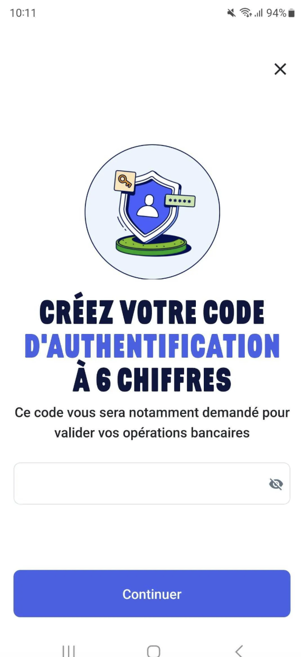 Vous devrez ensuite définir un code à six chiffres, qui vous sera demandé pour tous les prochains paiements ou ajouts de bénéficiaires bancaires.